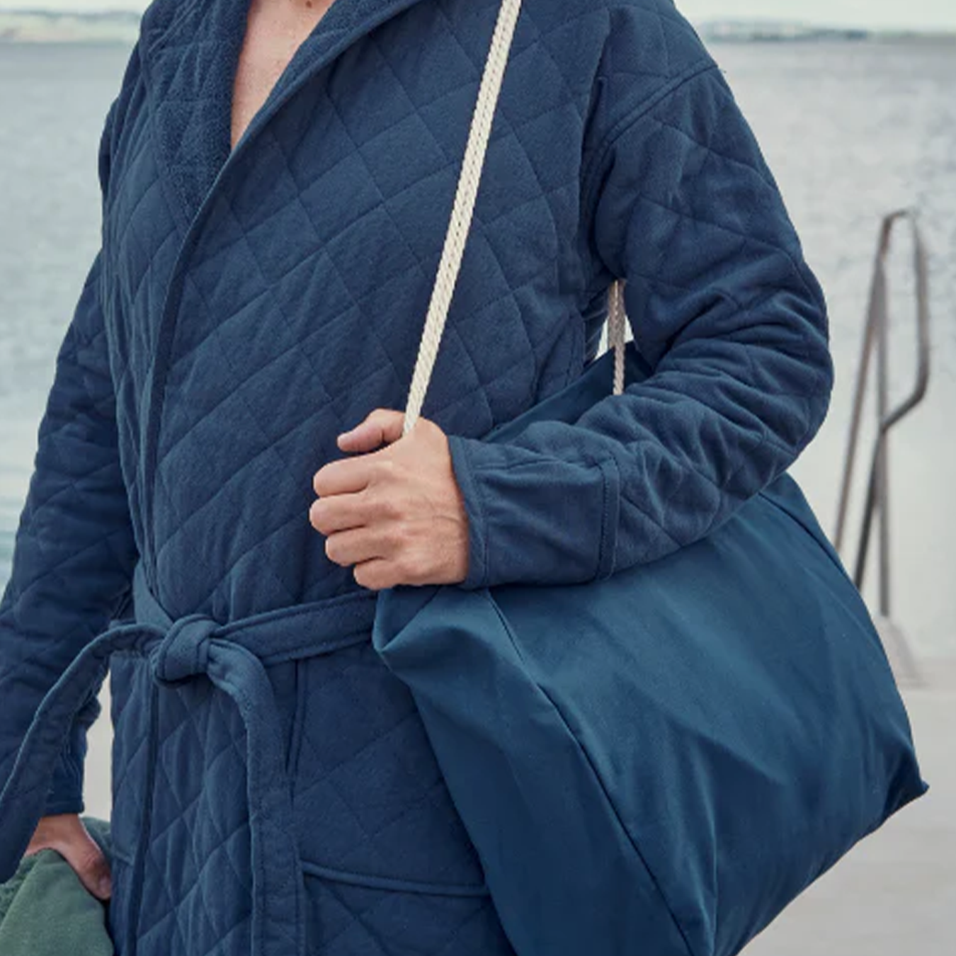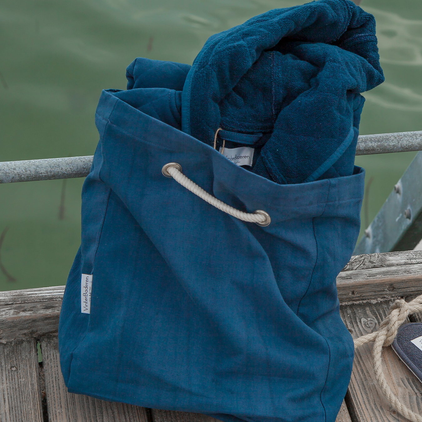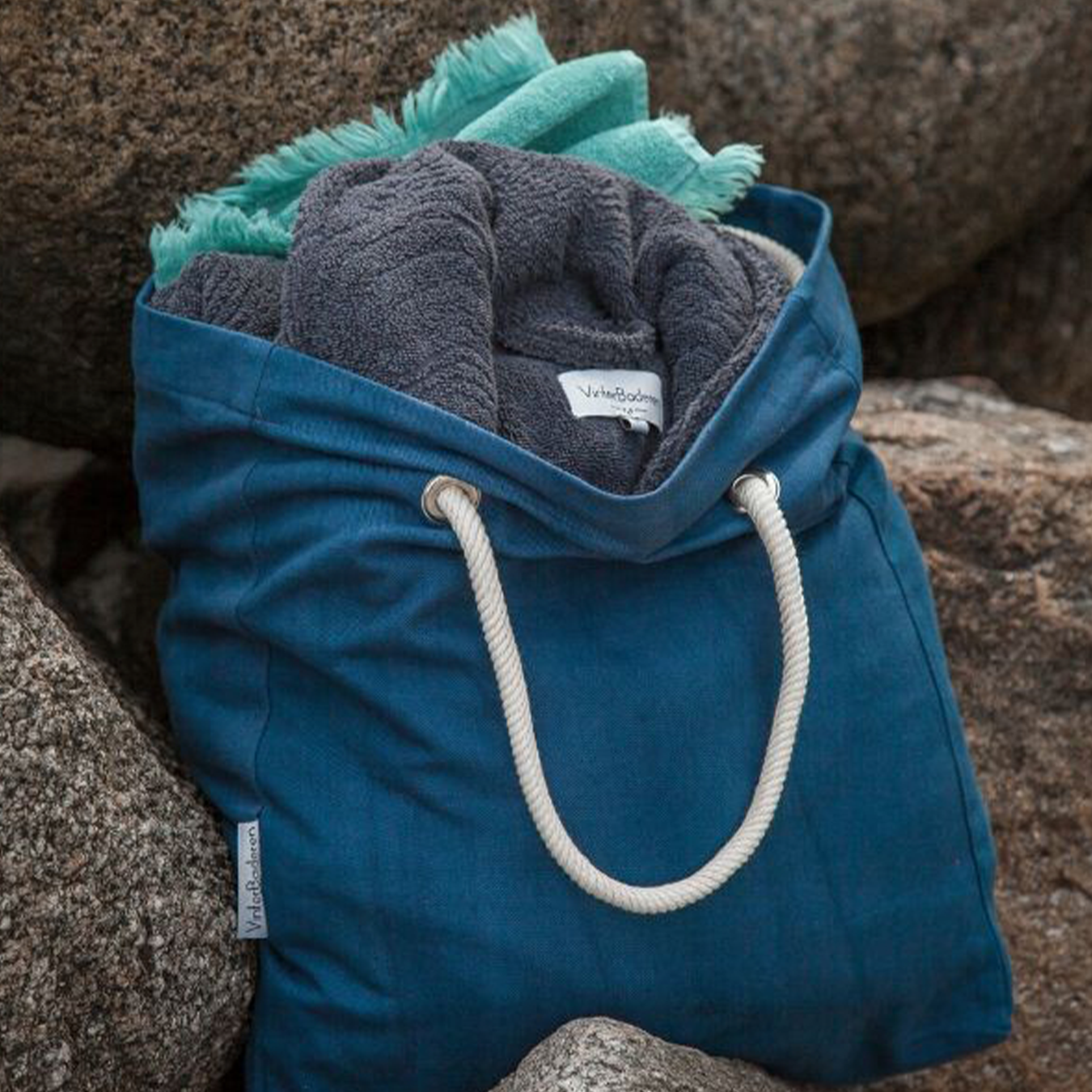 Tasken er produceret i bomuld og med flere brugsmuligheder. Rebet gør at man kan lave flere længder og samtidigt blot binde det omkring noget, imens man bader. Skøn mulepose i flot og slidstærkt kvalitetsstof.